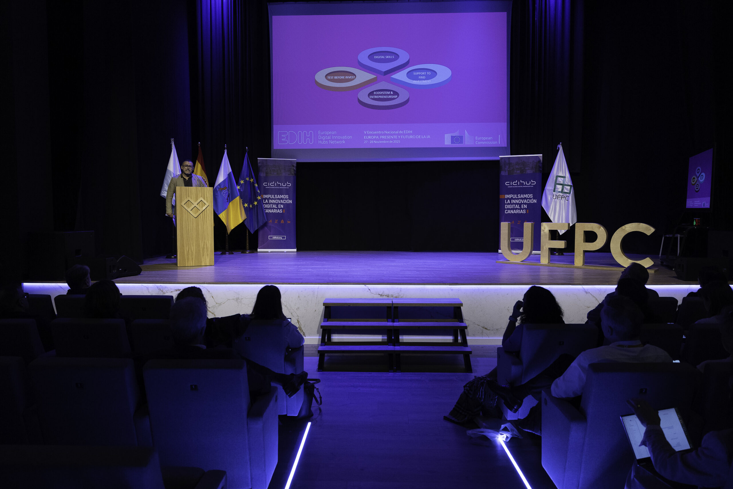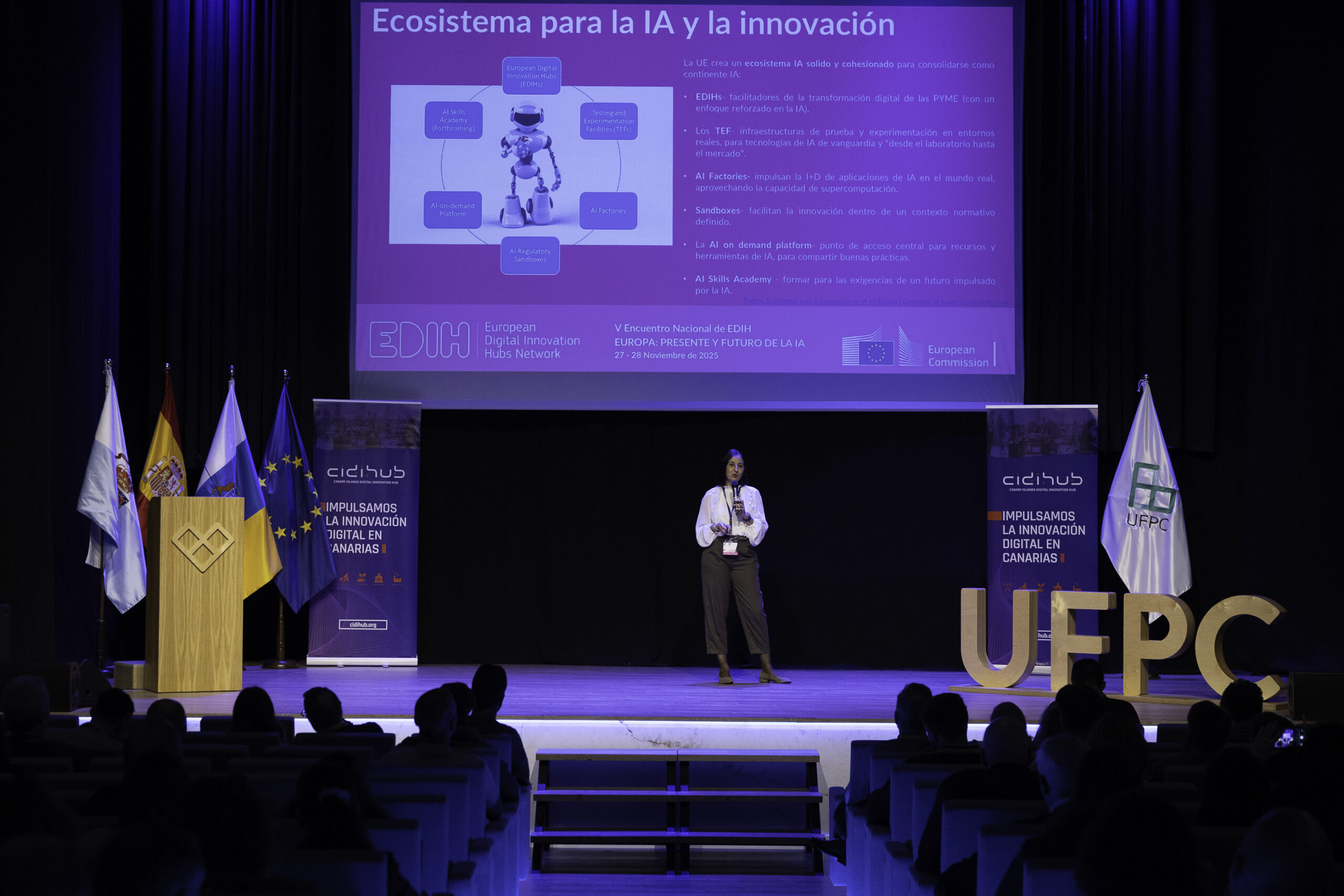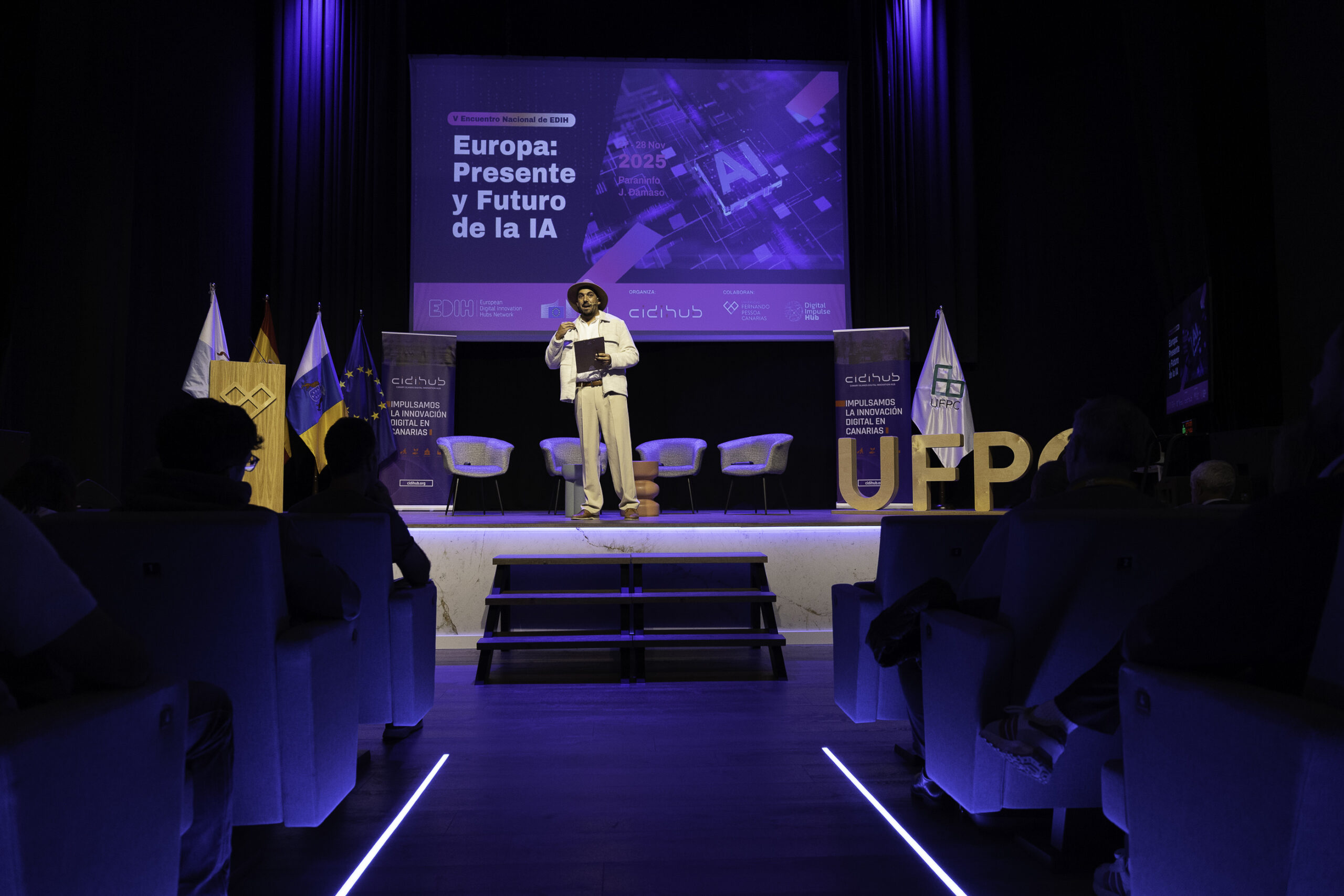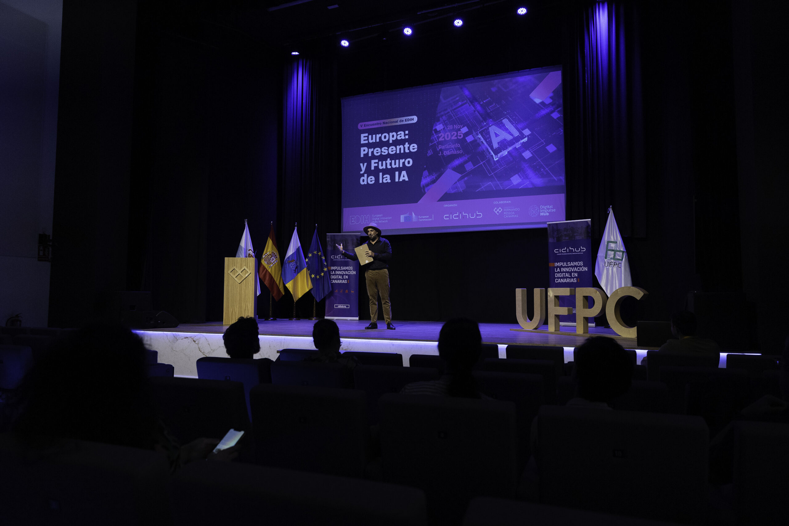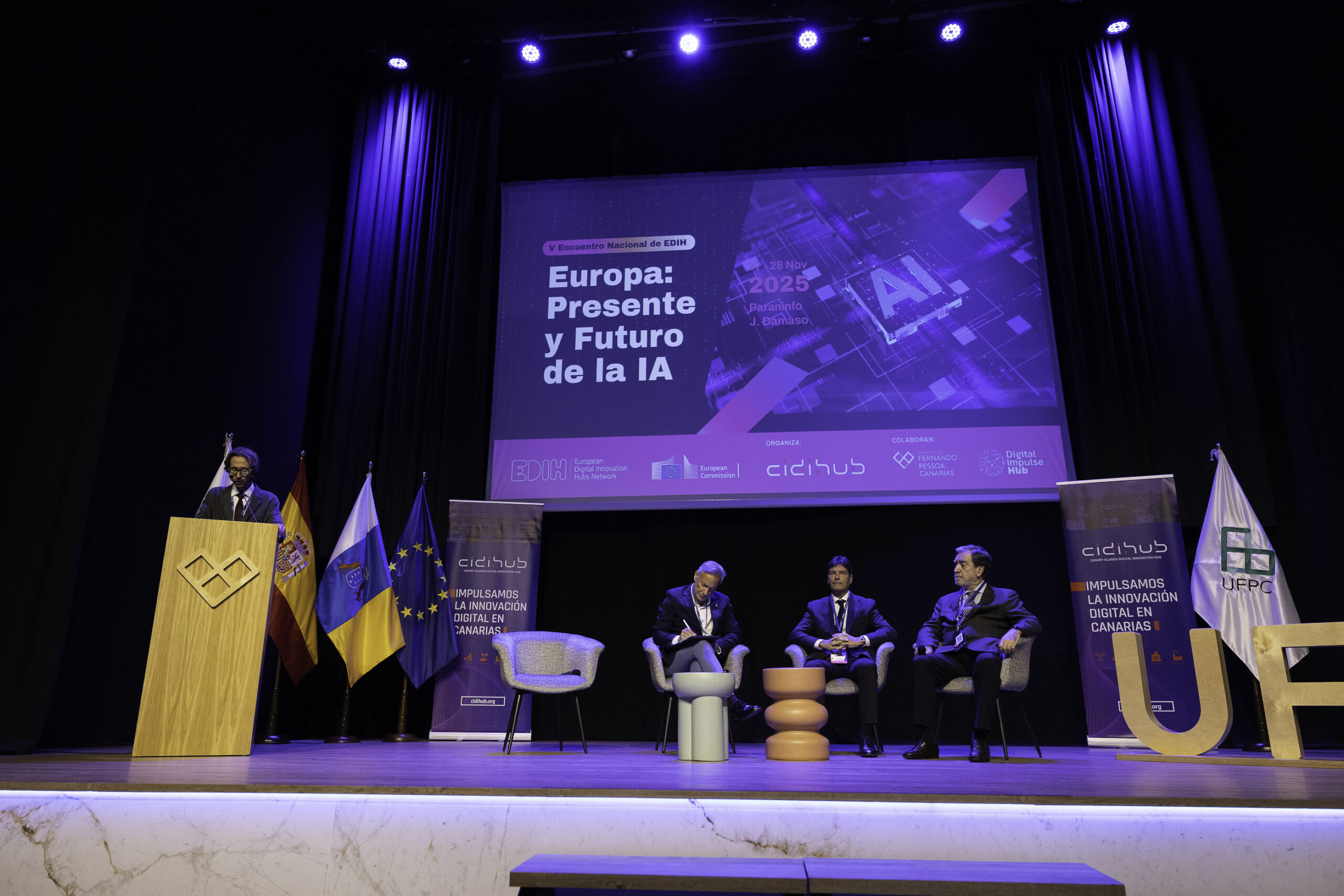 Desde CIDIHUB, en colaboración con Digital Impulse Hub, la Universidad Fernando Pessoa Canarias y nuestros socios regionales, tenemos el placer de invitarles formalmente a participar en el V Encuentro Nacional de EDIH: “Europa: Presente y Futuro de la IA”, que se celebrará los días 27 y 28 de noviembre de 2025 en Gran Canaria.