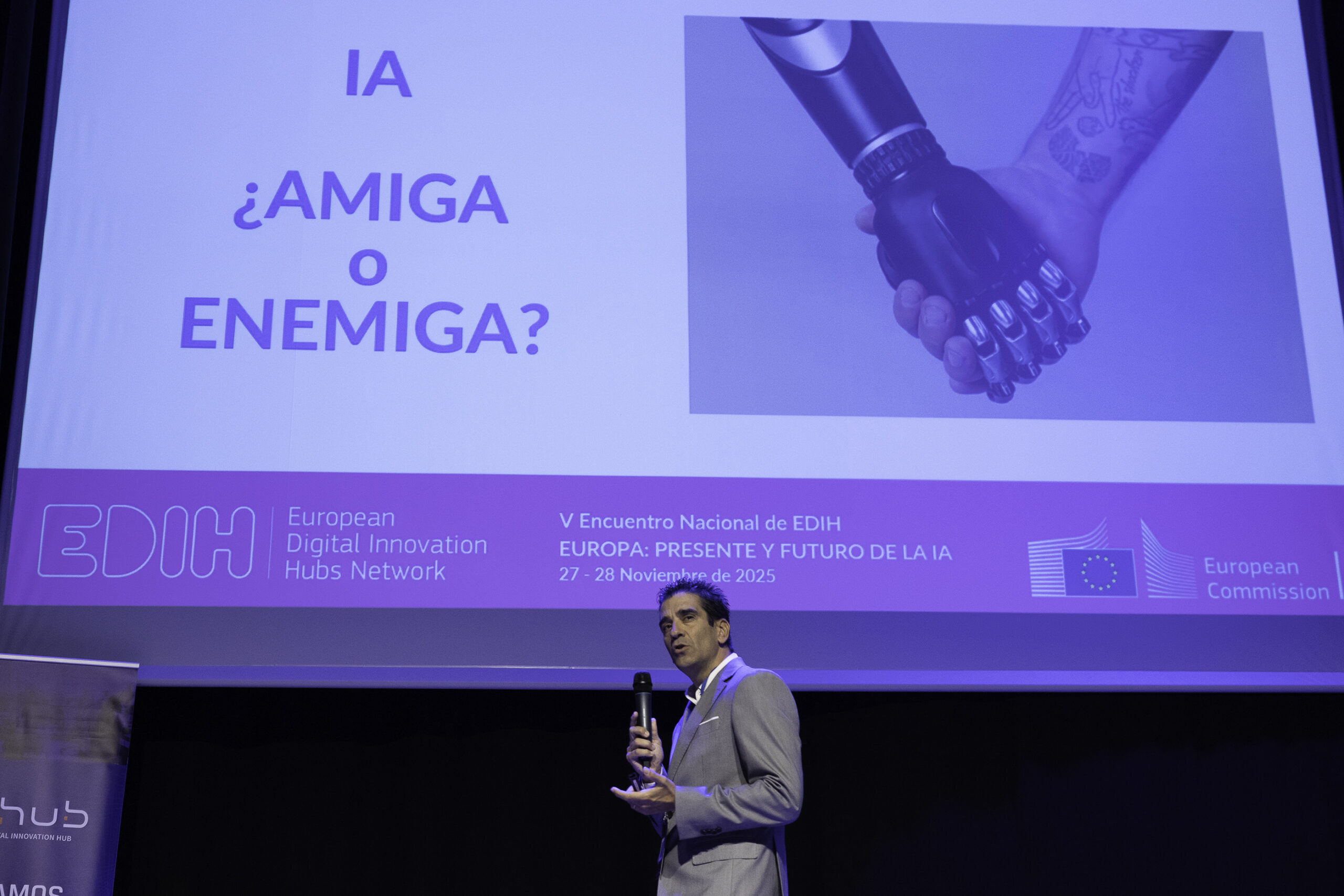 El evento “Europa: Presente y Futuro de la IA” reunirá durante dos jornadas en noviembre a expertos, instituciones y ciudadanía en torno al impacto de la inteligencia artificial en nuestra sociedad y en sectores estratégicos de la economía. El evento abrirá sus puertas el jueves 27 con una inauguración oficial que dará paso a un recorrido por las principales iniciativas europeas en materia de IA, la red nacional de EDIH y el papel de CIDIHUB como motor regional para su despliegue. A lo largo de la mañana se abordarán aplicaciones concretas que van desde los drones inteligentes y los diagnósticos médicos en segundos hasta casos de éxito empresariales ya en marcha, culminando con una mesa de expertos sobre la logística marítima y los puertos 4.0. La tarde se centrará en el potencial de la IA en la transición energética, la educación y la medicina, además de mesas redondas en las que se analizarán sus aportaciones a la internacionalización empresarial y la lucha contra el cambio climático.